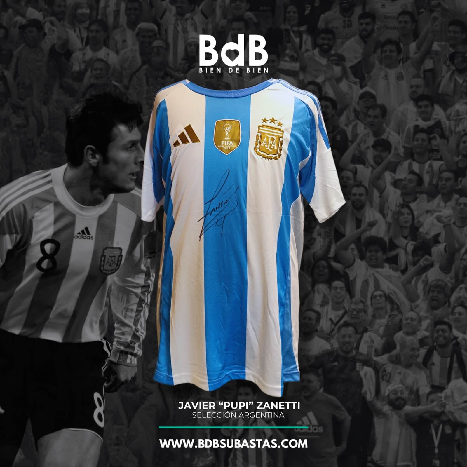 Subastá por la camiseta oficial de la Selección Argentina con la firma de Javier Zanetti. Todo lo recaudadó será destinado a las acciones que lleva adelante la Fundación P.U.P.I. Más información en https://www.fundacionpupi.org/