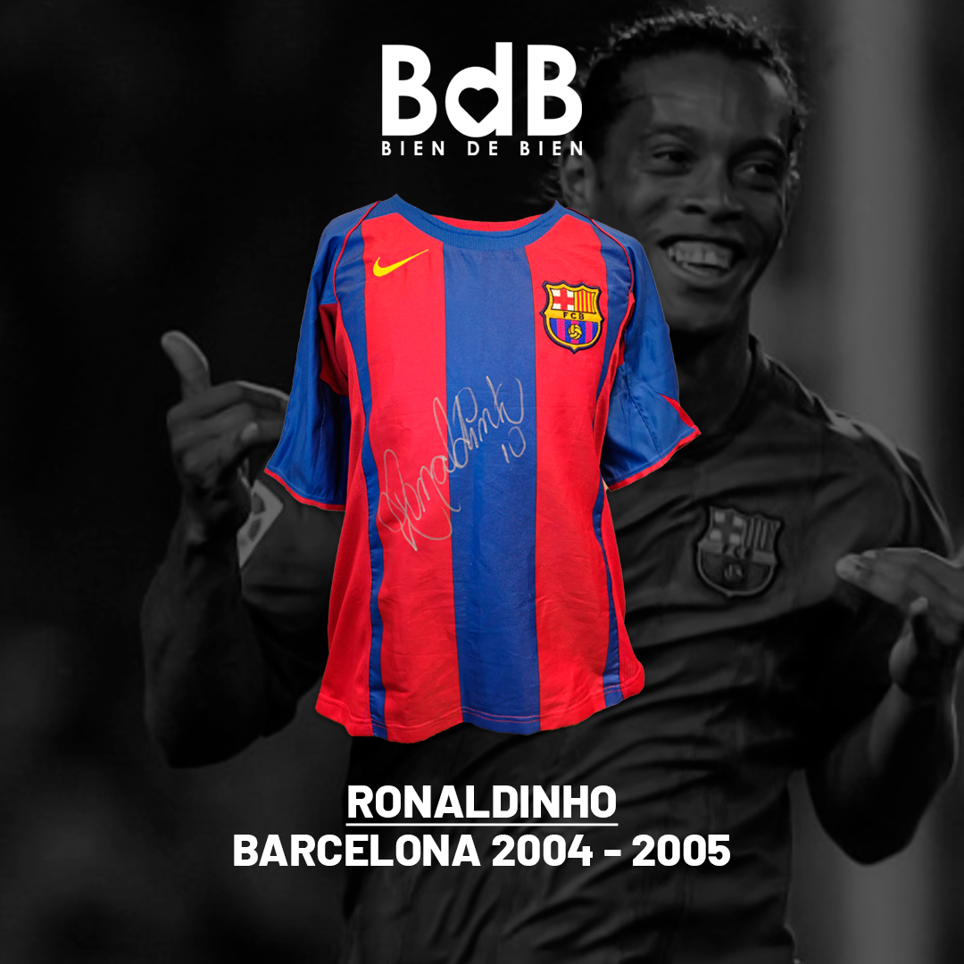 La camiseta es de la temporada 2004 – 2005 del FC Barcelona y se encuentra firmada por el carismático ex 10 de la institución catalana.